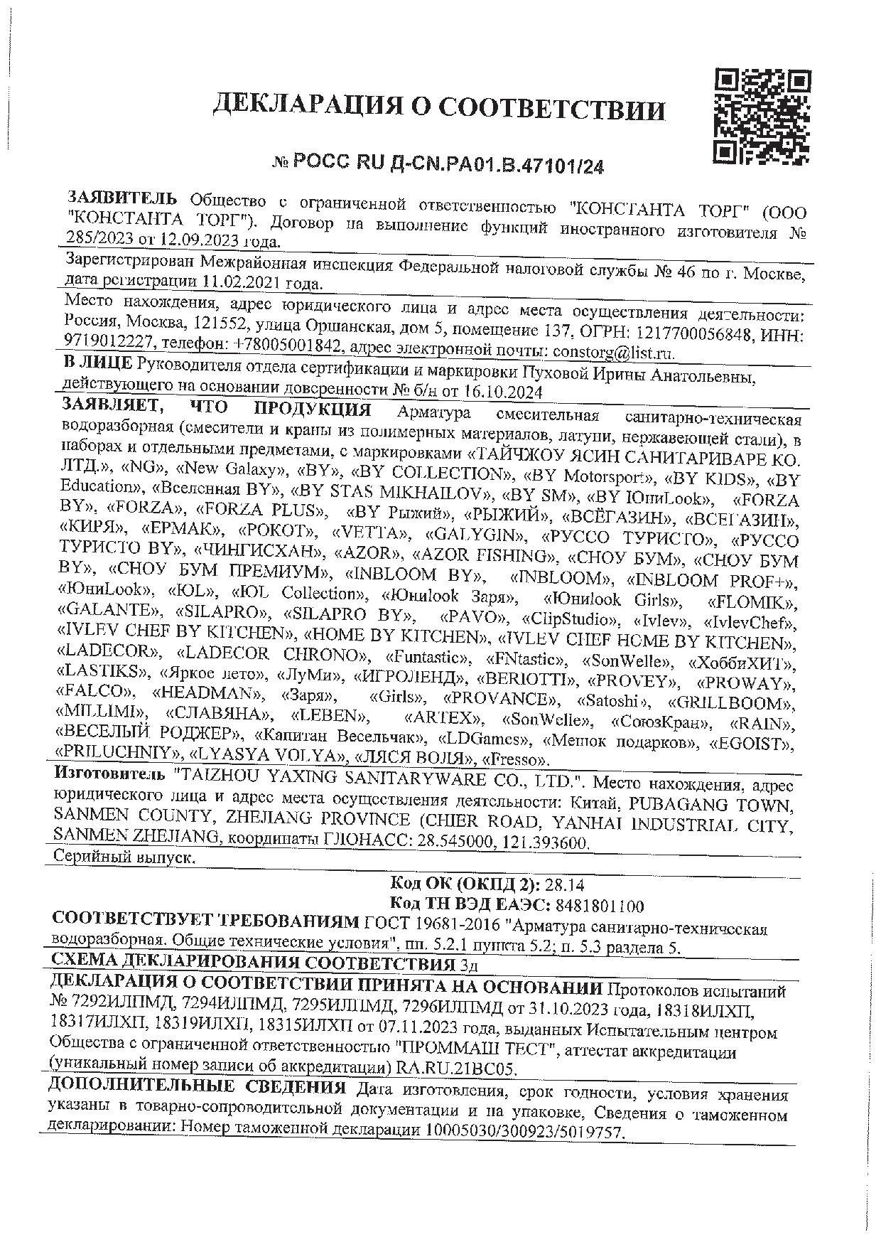 Гарантийный срок эксплуатации корпуса смесителя 5 лет |
