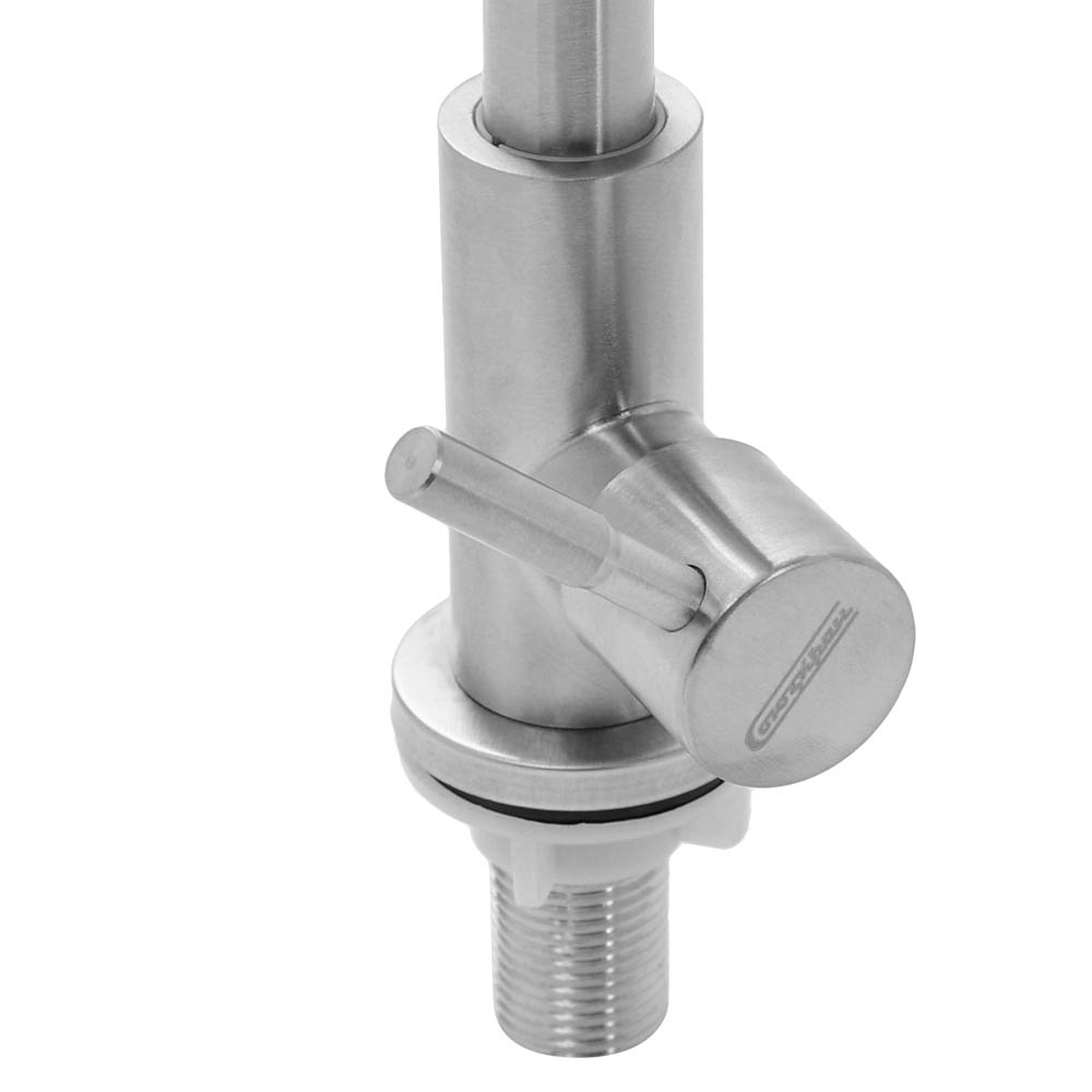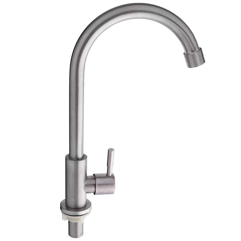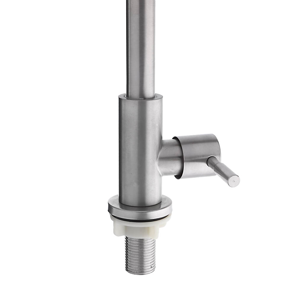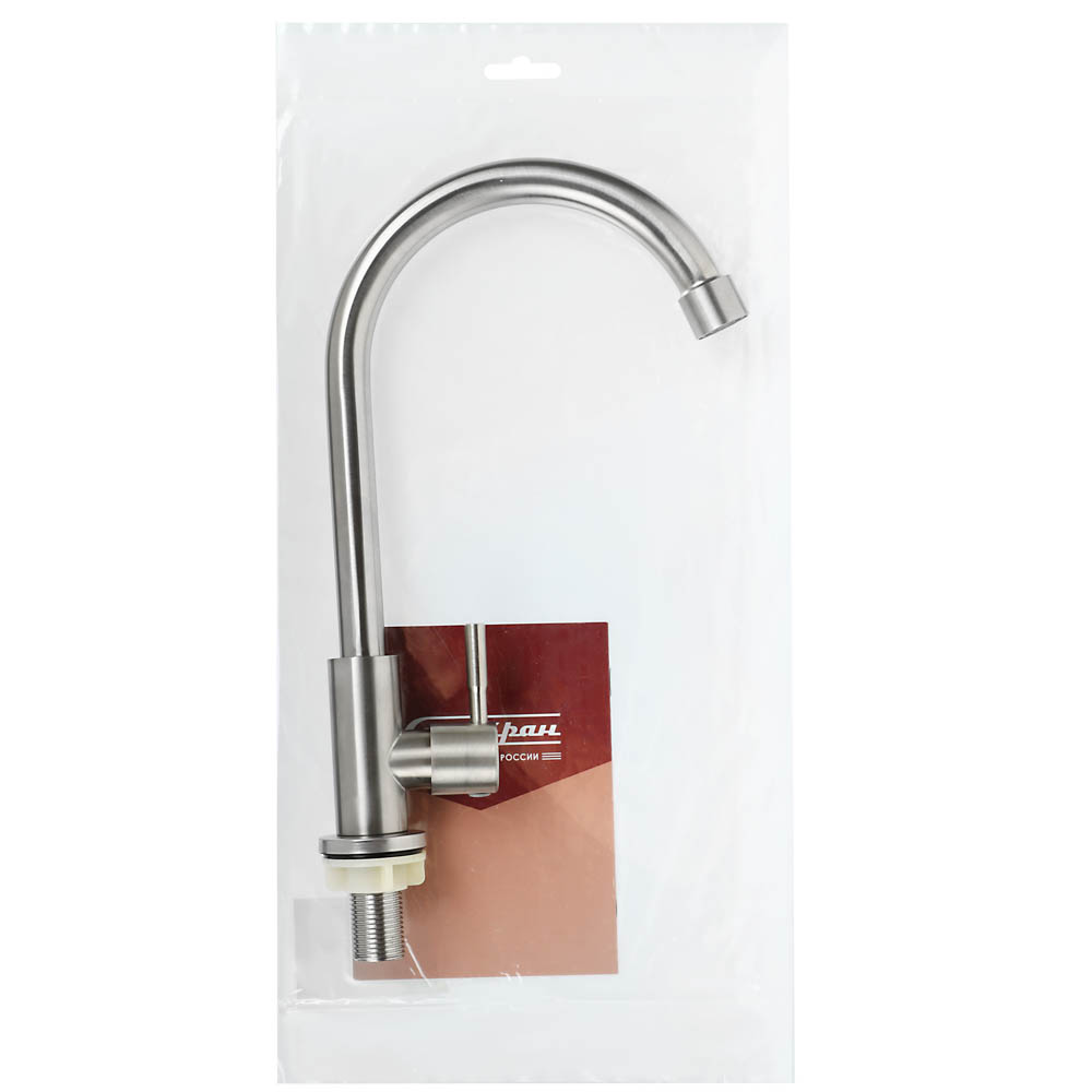 Кран для холодной воды SS06-R332 от СоюзКран прекрасно подойдет для мойки любого размера. Выполнен из нержавеющей стали, что является гарантией качества и долговечности, устойчив к царапинам и перепадам температур, экологичен и безопасен для здоровья. Поверхность не потеряет со временем свой роскошный вид, а уход за ней сводится к протиранию мягкой салфеткой. Оснащен надежным рычажным механизмом включения, настройки и регулировки воды с керамическим картриджем 25 мм, который не требует обслуживания, работает четко и не подвержен износу.