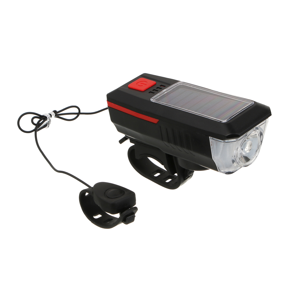Фонарь велосипедный передний с звонком, тм BY SPORT, с зарядкой от солнечной батареи/USB, 3/6 реж.