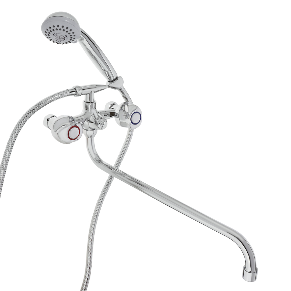 RAIN Смеситель для ванны Кварц, круглый излив 40см, керам. кран-буксы 1/2, душ. набор, латунь, хром