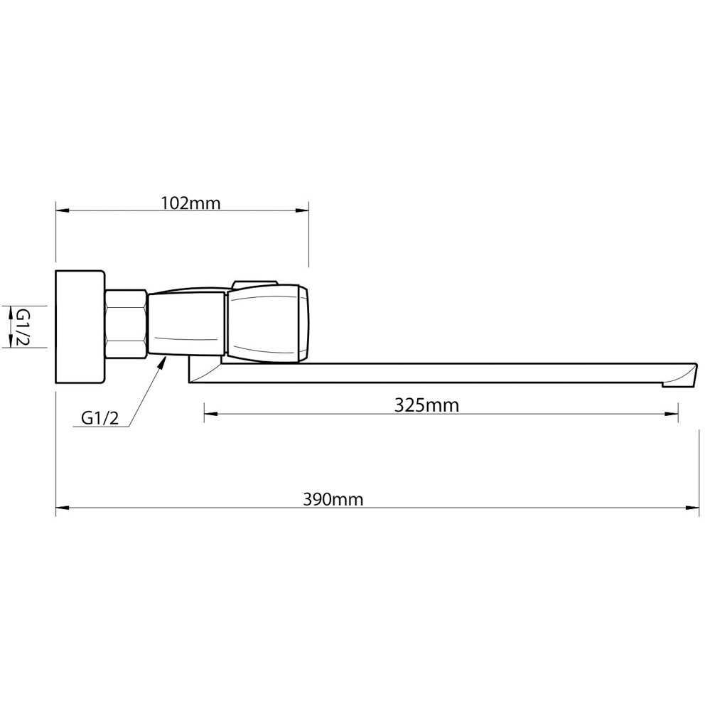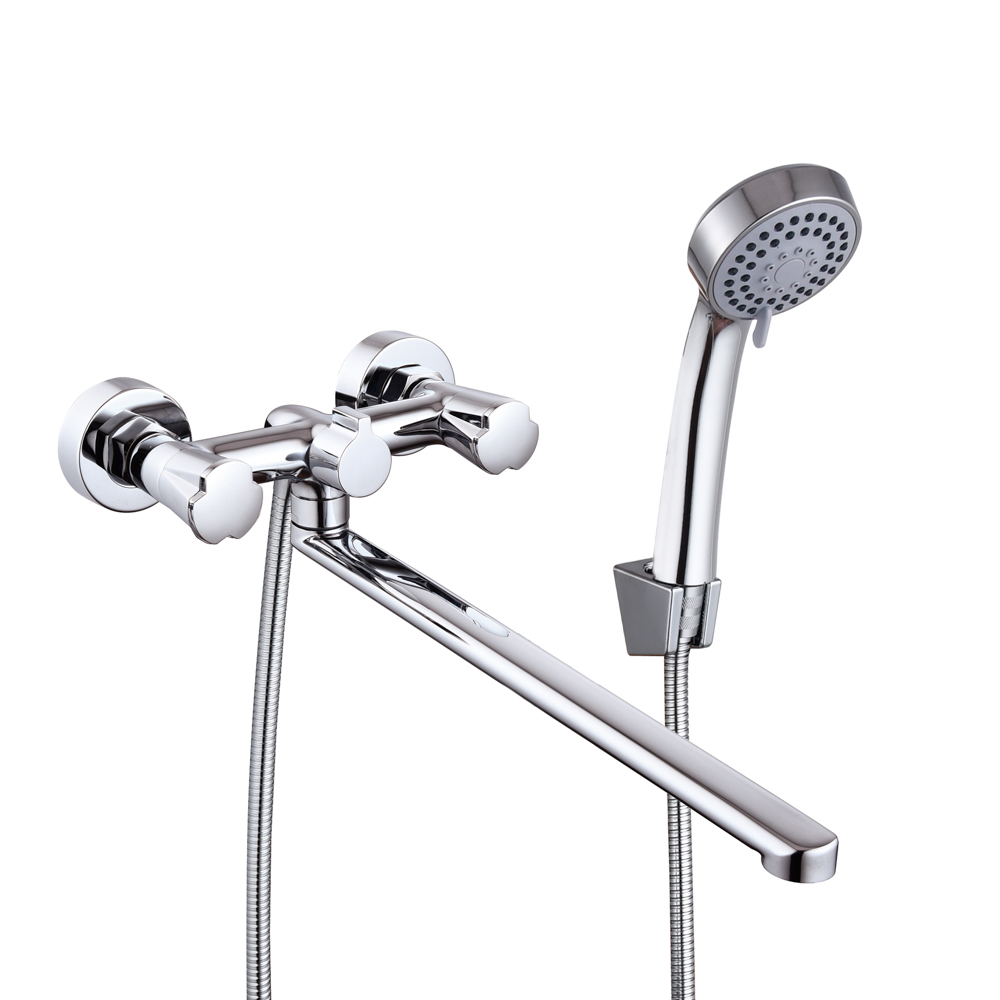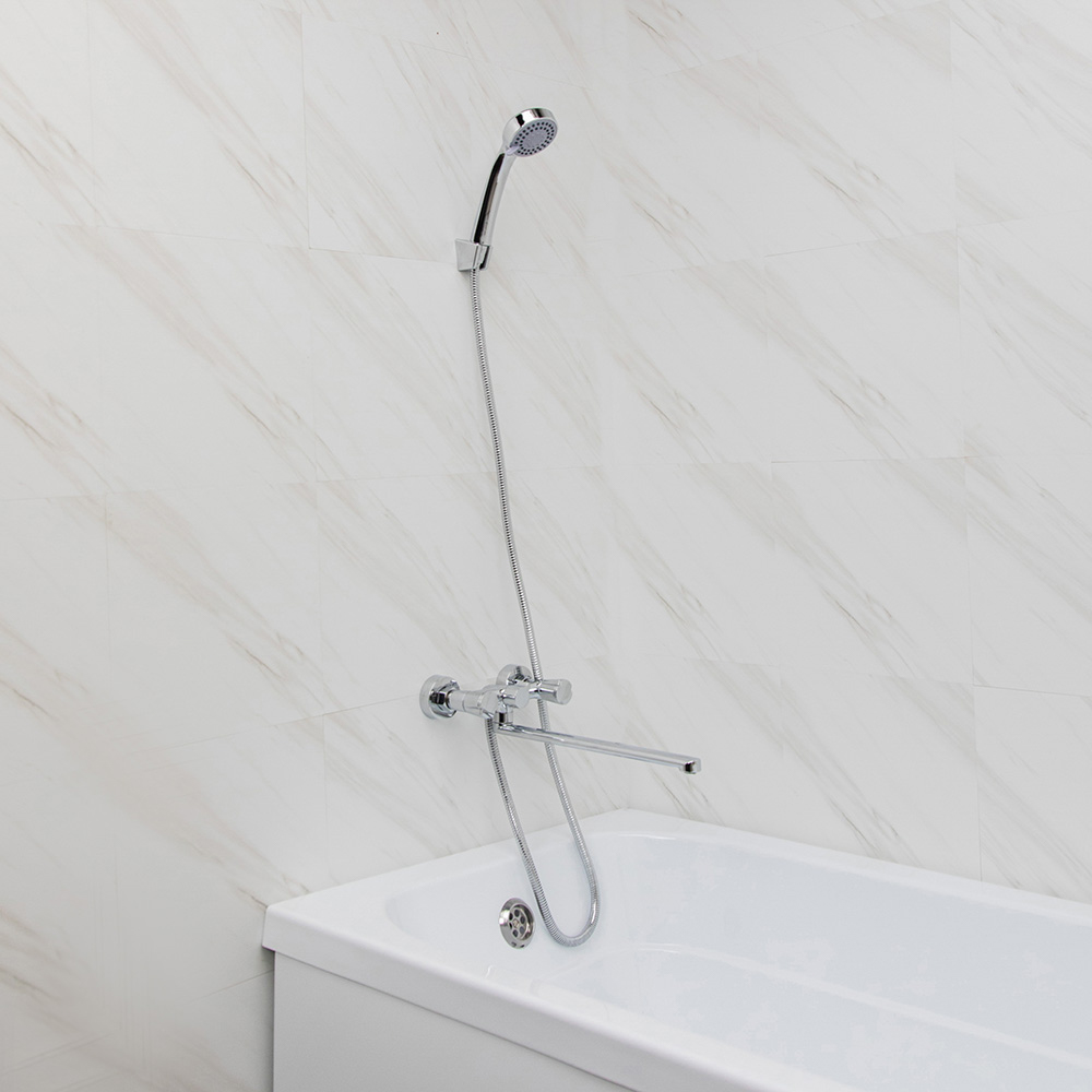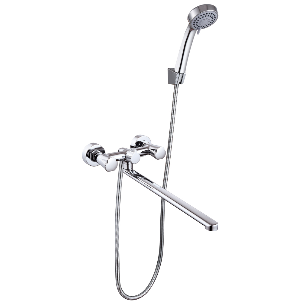 RAIN Смеситель для ванны Уран, прямой излив 30см, кран-буксы 1/2, душ. набор, овал, латунь, хром