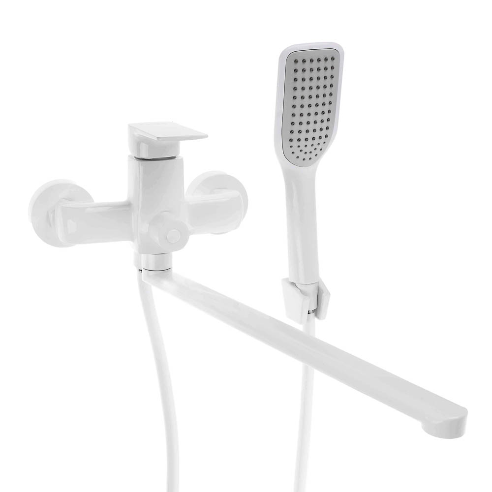 СоюзКран Смеситель для ванны с душем, прямой излив 35см, картридж 35мм, цинк, белый SK08-P109
