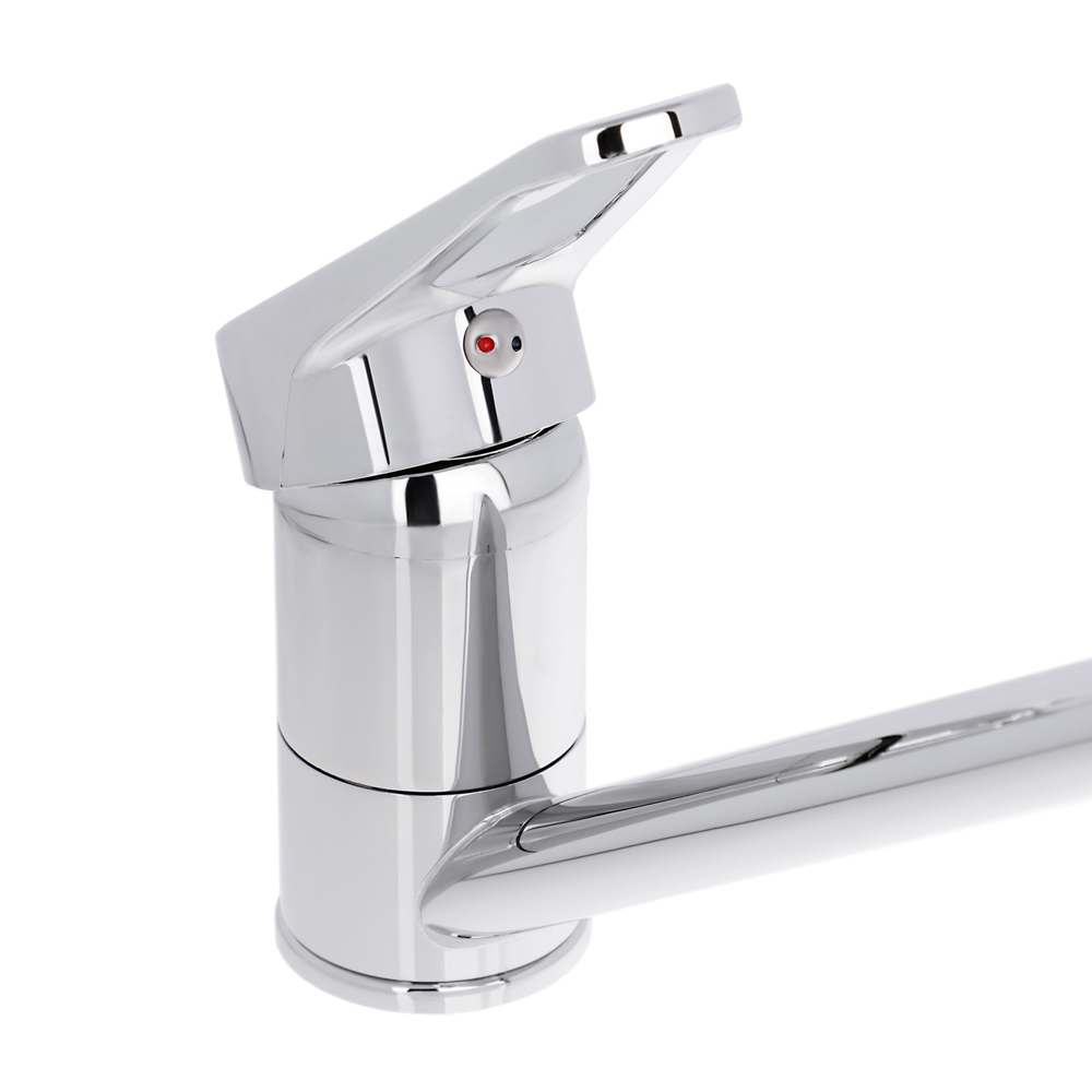 Смеситель для кухни от СоюзКран — надежный и стильный выбор для вашего интерьера. Оснащен низким S-образным плоским изливом длиной 25 см, удобен в использовании благодаря однорычажной системе управления. Выполнен из прочного цинкового сплава и имеет керамический картридж диаметром 35 мм, который обеспечивает плавное регулирование потока воды и долговечность. Хромированное покрытие придаёт изделию элегантный внешний вид и защищает от коррозии. Крепится на шпильке, что делает установку быстрой и надёжной.