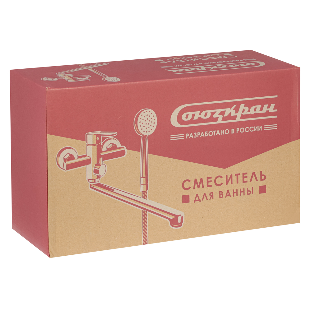 СоюзКран Смеситель для ванны с душем, прямой излив 35см, кер. картридж 40мм, нерж. сталь, SS08-P118