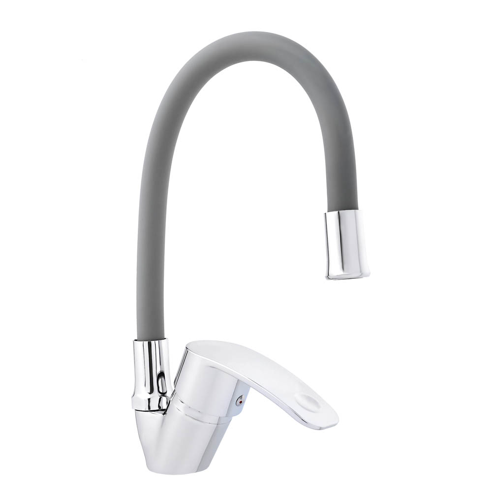 СоюзКран Смеситель для кухни, гибкий излив, керам. картридж 40мм, серый, цинк, SK01-С113