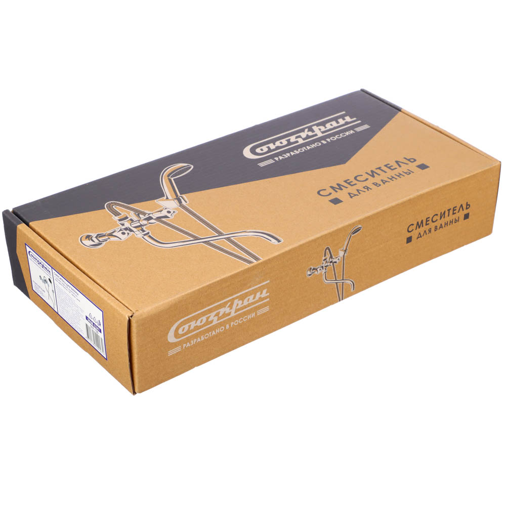 СоюзКран Смеситель для ванны с душем, круглый излив 35см, кер. кран-буксы 1/2, хром, цинк, SK08-S241