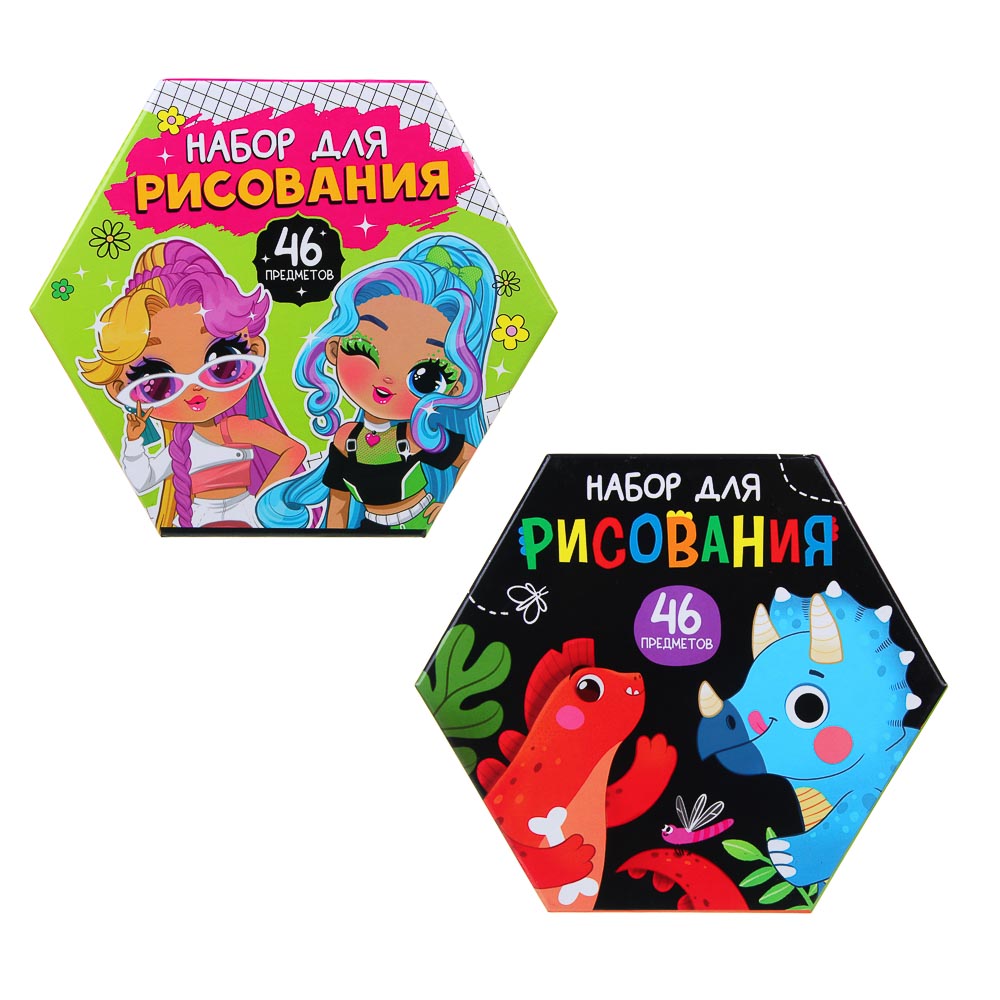ХОББИХИТ Набор для рисования 46 пр., картон, пластик, дер., 16,5х18,5х9см, 2 дизайна