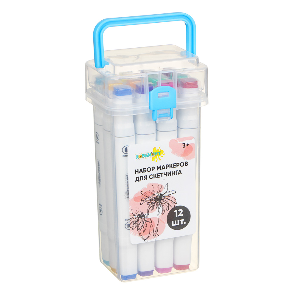 ХОББИХИТ Набор маркеров для скетчинга, пластик, 8,2х17х6,5см, 12 цветов