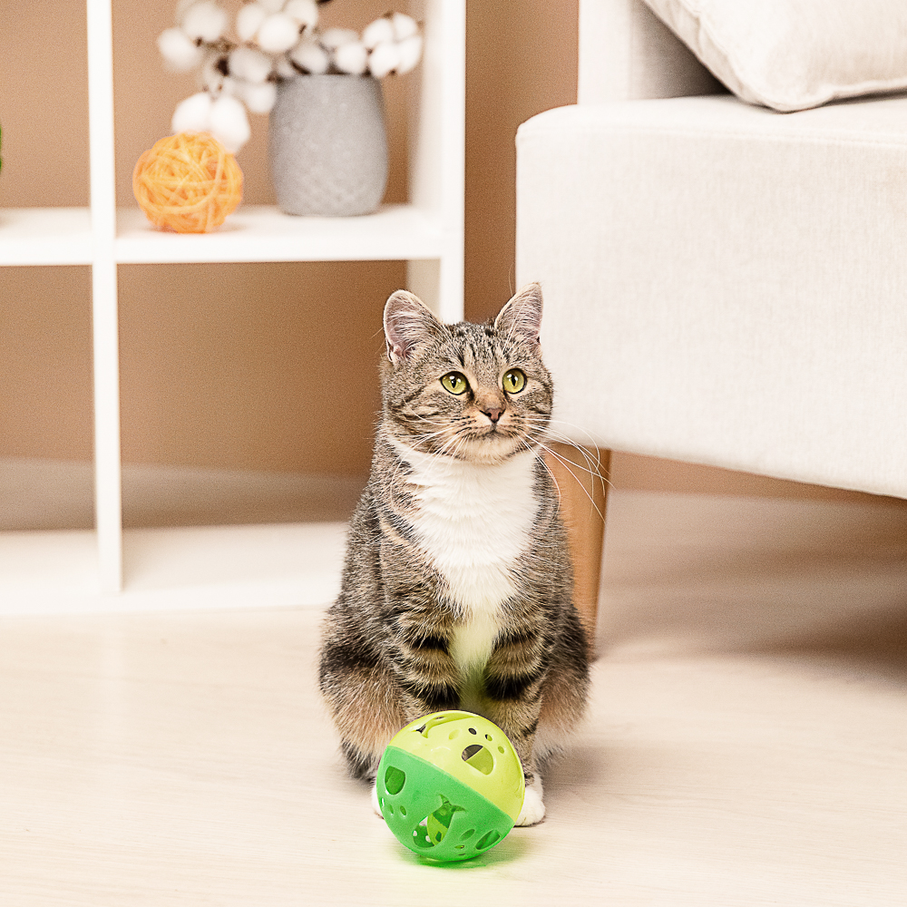 VETTA Игрушка для кошек — идеальное развлечение для вашего пушистого друга! Забавная и яркая игрушка размером 9,5 см изготовлена из высококачественной пластмассы, что делает её прочной и безопасной для вашего котёнка. Звенит при игре, привлекая внимание кошки и стимулируя её активность. Ваш котик будет в восторге от этой игрушки, которая поможет ему развивать координацию движений и поддерживать физическую форму.