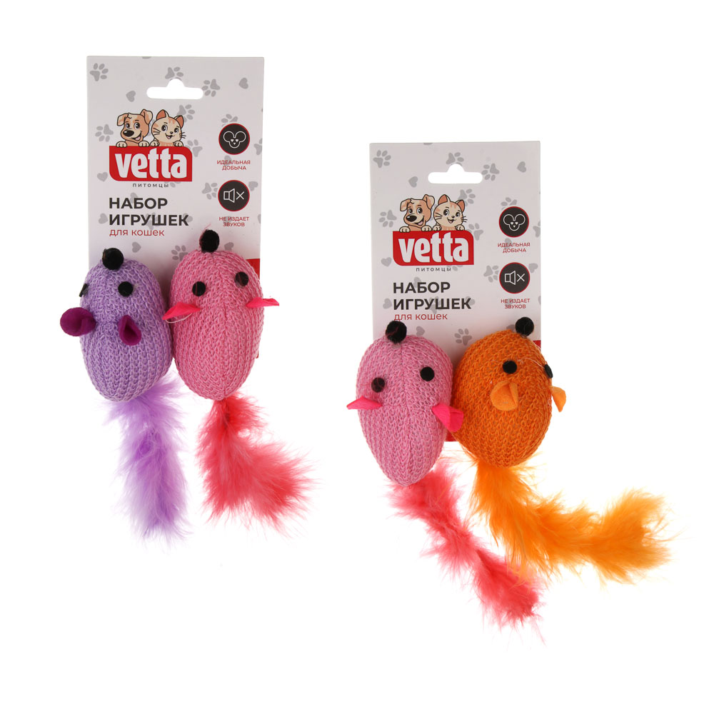 Набор игрушек для кошек, тм VETTA, мышки вязаные, п/э, перо, 14см, 2шт