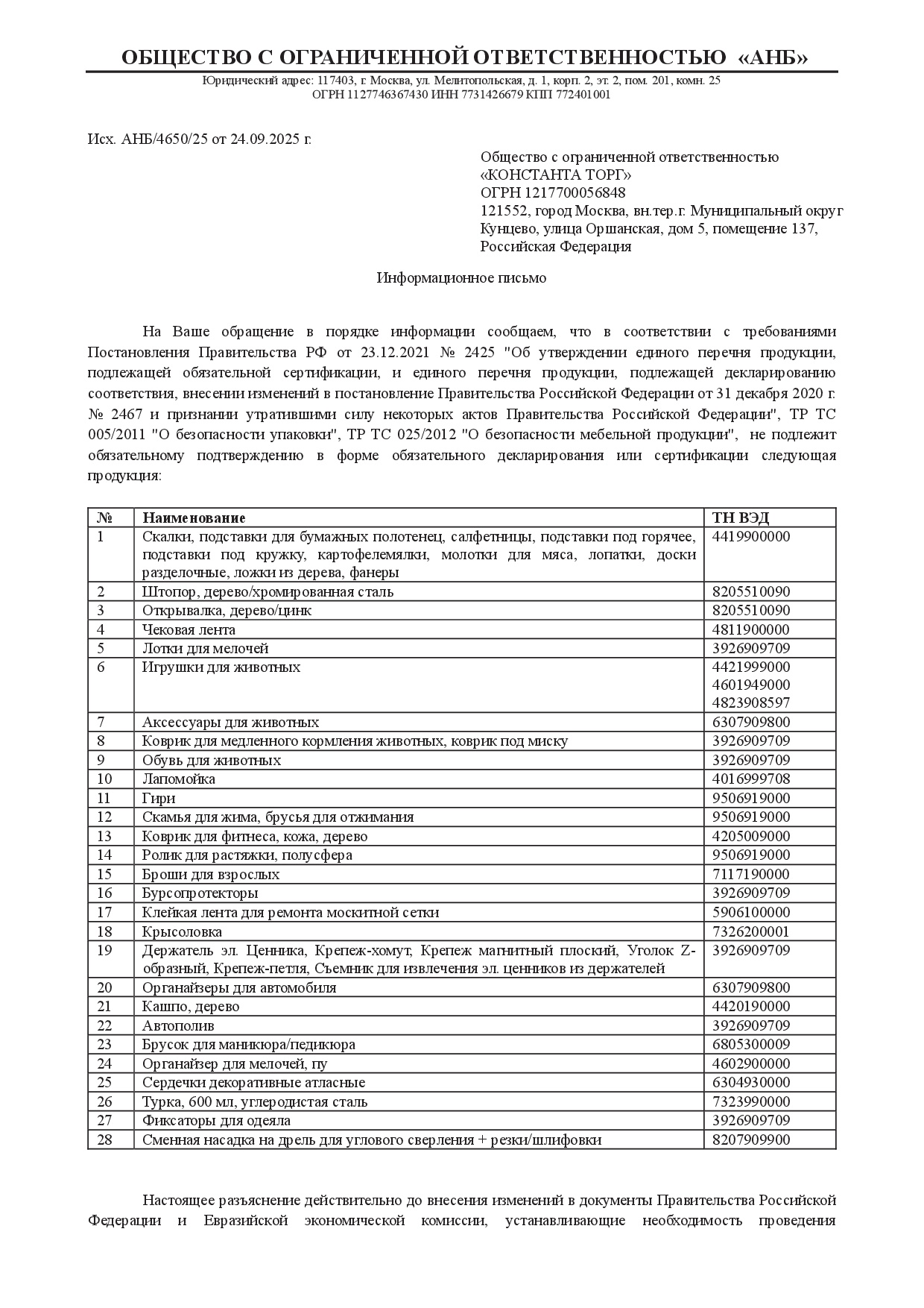 Тип товара