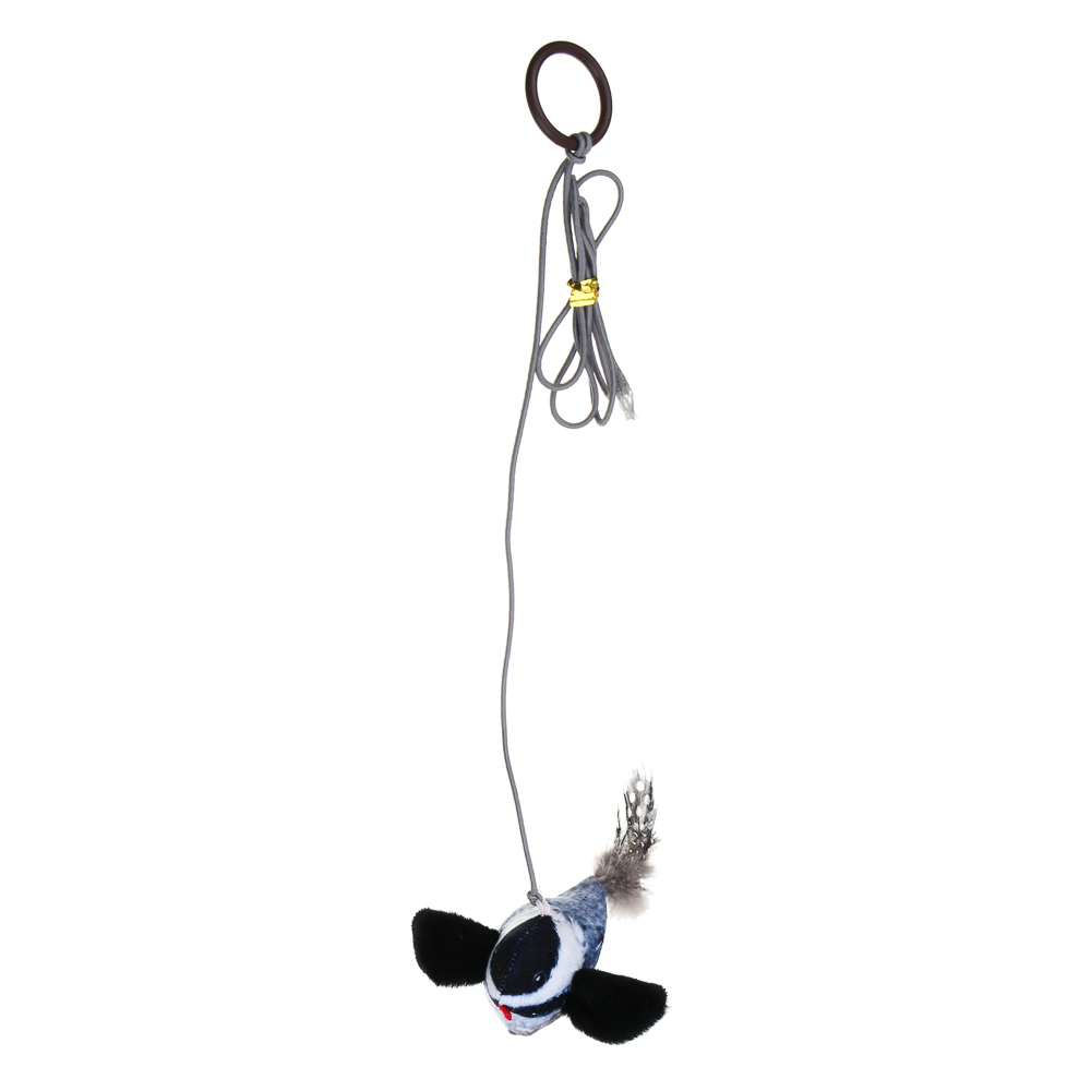 Игрушка для домашних животных VETTA 7,5х5 см в виде птички на веревочке с подвесом способствует развитию охотничьего инстинкта, координации и физической активности у кошек, живущих в доме или квартире. Игрушка-дразнилка пищит и привлекает к себе внимание, а ее размер и форма повторяют силуэт настоящей птицы, поэтому кошка расценивает ее как добычу. Птичку можно повесить на крючок, чтобы питомец активно играл или пытался до нее добраться. Подходит для любых возрастов и пород. Батарейки входят в комплект.
