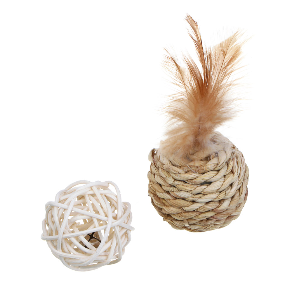 Игрушка для домашних животных VETTA, плеть, перо – это набор из 2-х игрушек для кошек в виде шаров. Один шар с пером, а второй – с колокольчиком внутри. Игрушки на натуральной основе безопасны для питомца, не травмируют когти, имеют легкий вес, поэтому кошка будет с удовольствием катать их по полу. Идеально подходят для поддержания физической формы животных домашнего содержания, стимулируют охотничий инстинкт и развивают координацию.