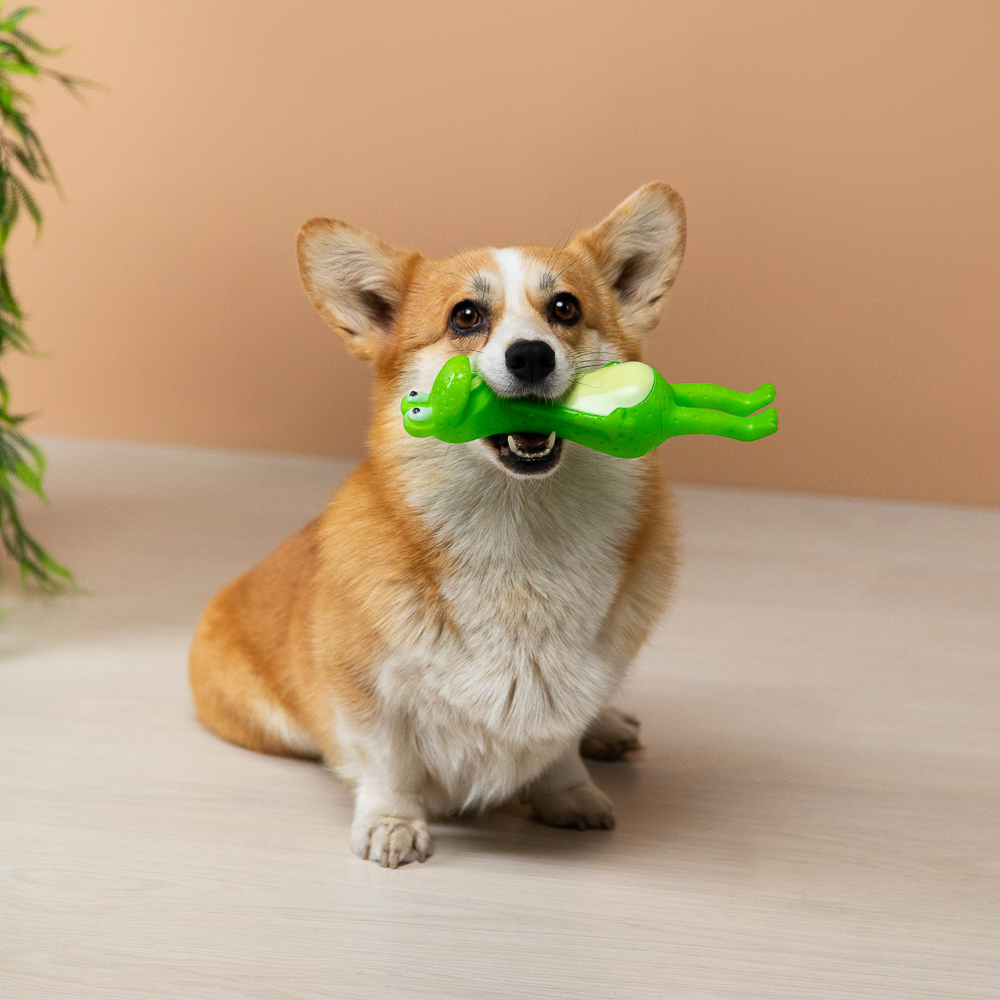 Игрушка для собак "Лягушка" — это идеальный выбор для мелких и средних пород, обеспечивающий весёлую и полезную игру. Изготовленная из прочного ПВХ, игрушка оснащена пищалкой, которая активизирует охотничьи инстинкты и поддерживает физическую активность вашего питомца. Она укрепляет жевательные мышцы и подходит для умеренного жевания. Размер игрушки 23х6,5 см, что делает её удобной для собак разного размера. Не подходит для собак, склонных к агрессивному жеванию.