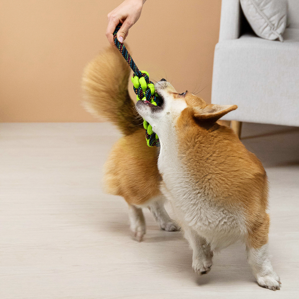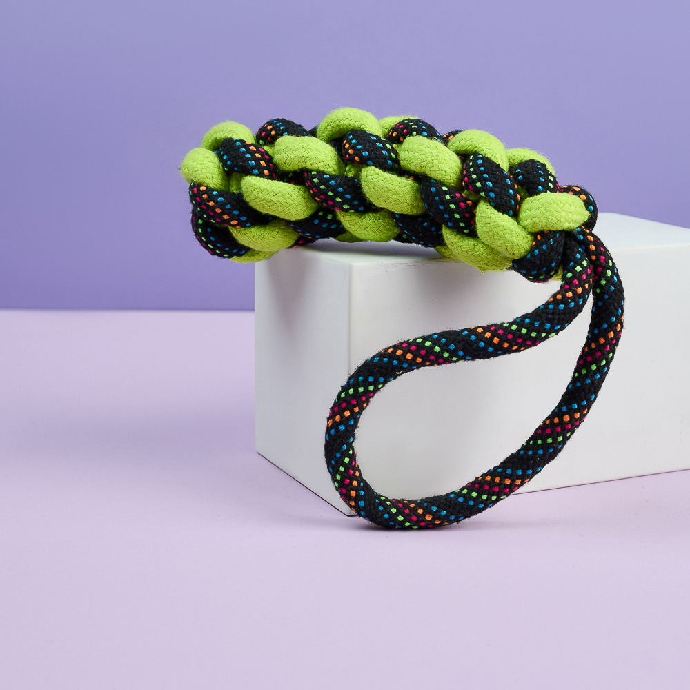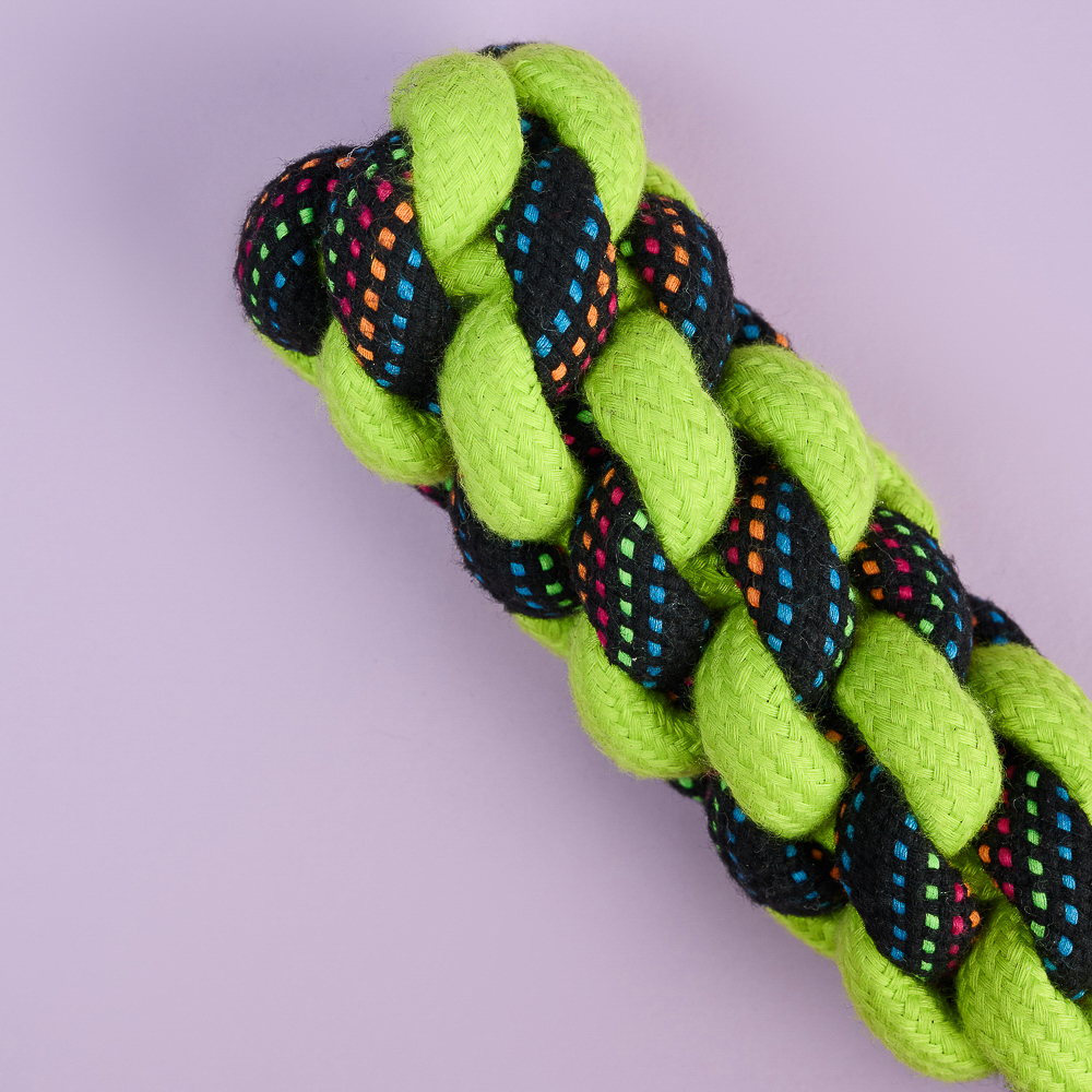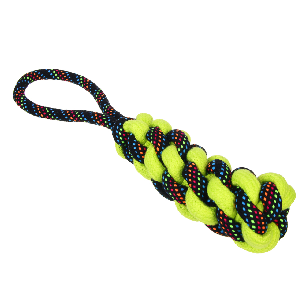 Плетеный канат с ручкой – идеальный выбор для активных игр и перетягивания, специально разработанный для крупных пород собак. Изготовленный из прочного хлопка и полиэстера, этот канат выдержит даже самые интенсивные нагрузки. Длина 35 см обеспечивает удобство использования как для вашего питомца, так и для вас. Плотное плетение гарантирует долговечность, а натуральные материалы обеспечивают безопасность для здоровья собаки. Этот канат не только увлечет вашего питомца в веселую игру, но и поможет развивать его жевательные мышцы и поддерживать здоровье зубов. Яркий дизайн добавит радости в каждую игру!
