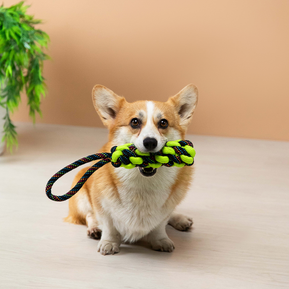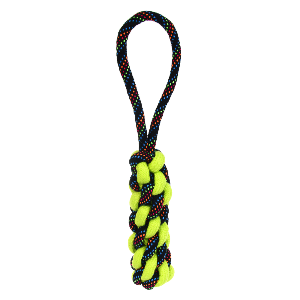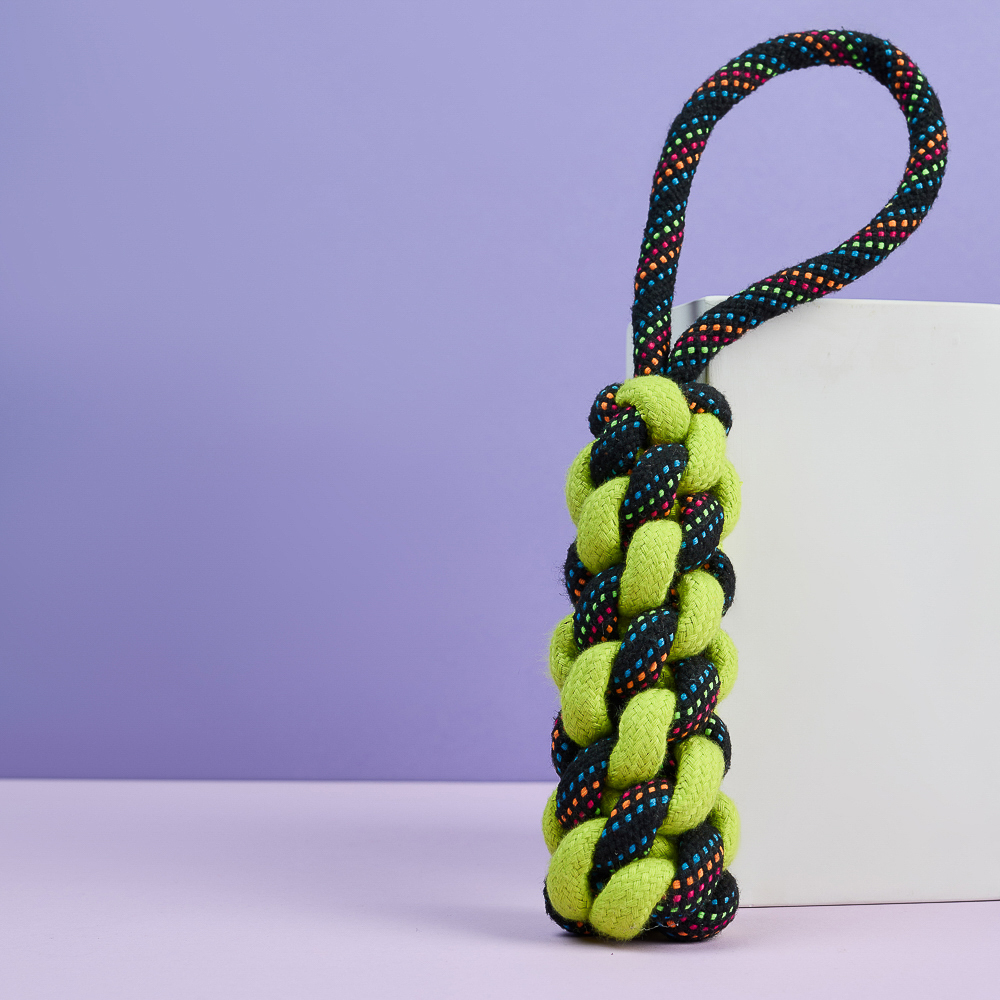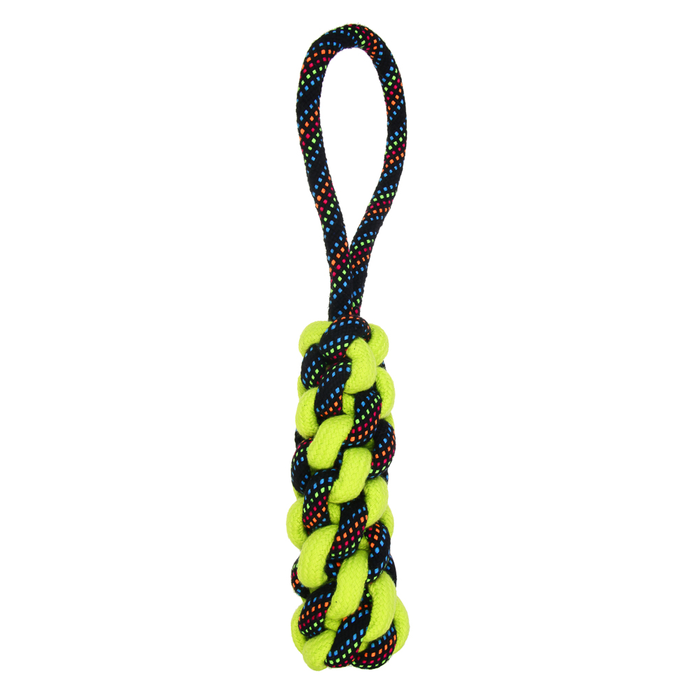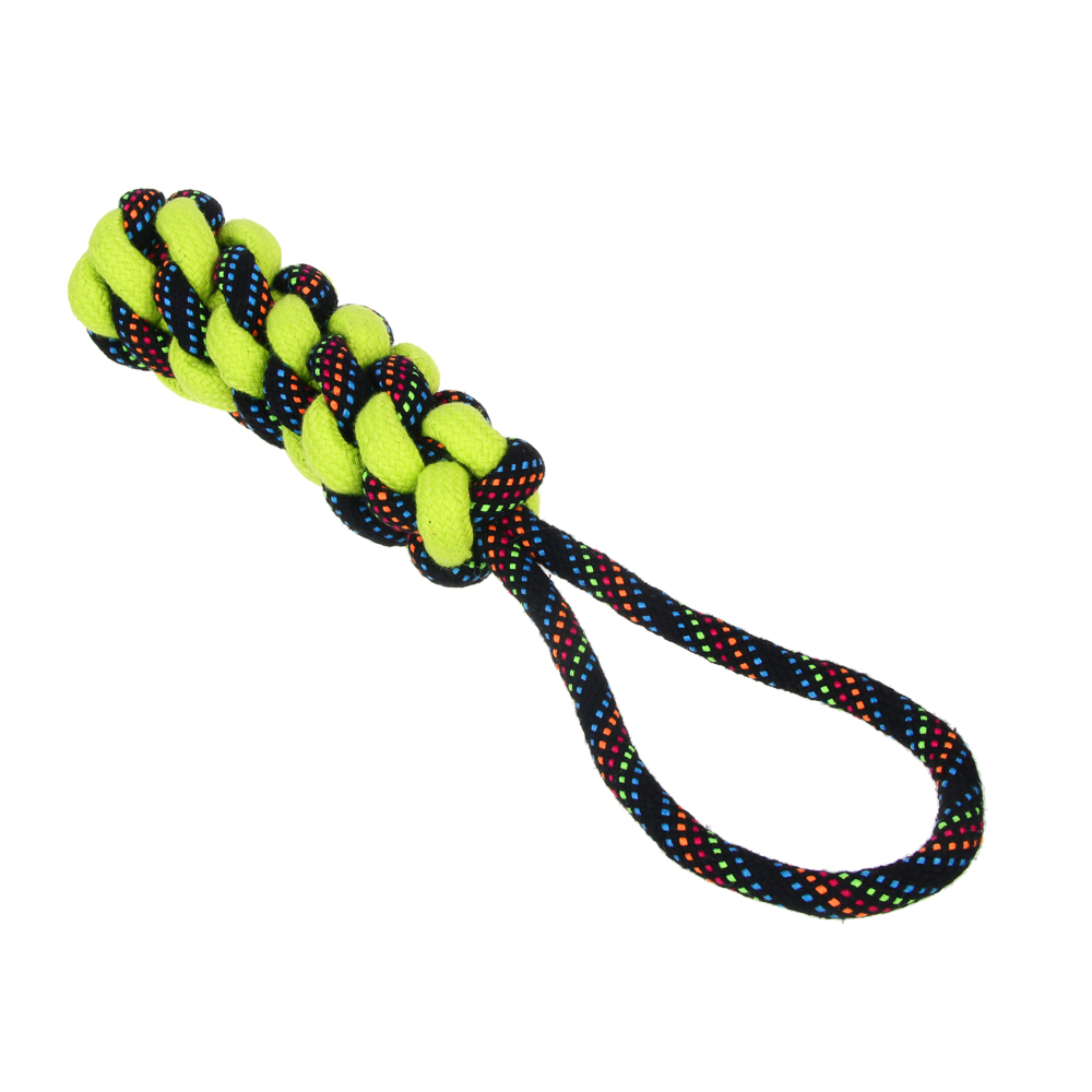 Плетеный канат с ручкой – идеальный выбор для активных игр и перетягивания, специально разработанный для крупных пород собак. Изготовленный из прочного хлопка и полиэстера, этот канат выдержит даже самые интенсивные нагрузки. Длина 35 см обеспечивает удобство использования как для вашего питомца, так и для вас. Плотное плетение гарантирует долговечность, а натуральные материалы обеспечивают безопасность для здоровья собаки. Этот канат не только увлечет вашего питомца в веселую игру, но и поможет развивать его жевательные мышцы и поддерживать здоровье зубов. Яркий дизайн добавит радости в каждую игру!