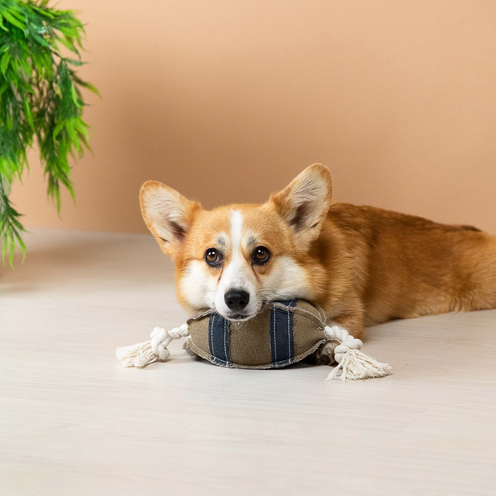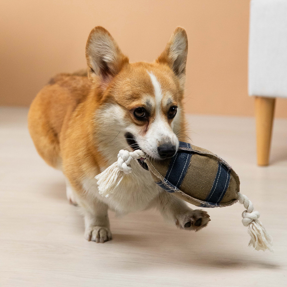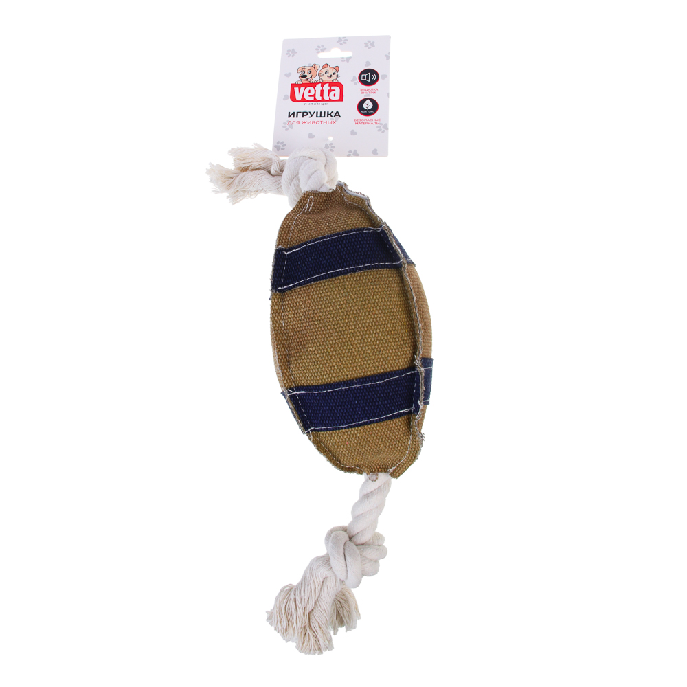 Игрушка для собак "Мяч для регби" — отличный выбор для крупных и средних пород, который подарит вашему питомцу часы увлекательной игры. Изготовленная из безопасного хлопка, эта игрушка не только пищит и шуршит, стимулируя охотничьи инстинкты, но и помогает чистить зубы и укреплять жевательные мышцы. Размер 39 х 9 см делает её удобной для собак любого размера. Игрушка снимает стресс и поддерживает физическую активность, обеспечивая заботу и комфорт вашему питомцу. VETTA питомцы — комфорт и забота о каждой лапке!