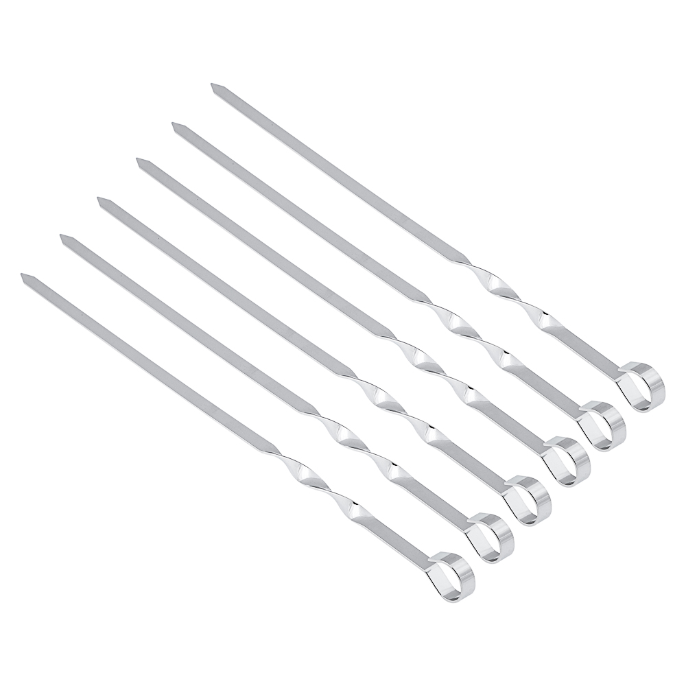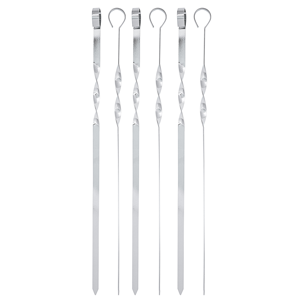 Набор шампуров – отличный выбор для любителей шашлыка и барбекю. В комплекте 6 прочных шампуров из нержавеющей стали, длина каждого – 45 см, что удобно как для мелких, так и для крупных кусков мяса. Ручки с изогнутым кольцом выглядят не только стильно, но и практично: шампуры не скатываются с решётки, а мясо не соскальзывает при переворачивании. Поверхность шампуров гладкая, легко моется и не ржавеет, идеально подходит для частого использования. Все шампуры поставляются в удобном тканевом чехле – можно брать с собой на пикник, дачу или в поездку, не боясь повредить их или испачкать сумку. Просто, надёжно и функционально: всё, что нужно для вкусного и удобного приготовления на огне.