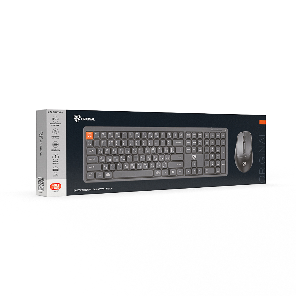 Беспроводной набор клавиатура и мышь TOP 2.4GHz+BT состоит из полноразмерной клавиатуры с 113 клавишами, включая мультимедийные клавиши FN+F1-F12, и беспроводной мыши с 6 кнопками и разрешением сенсора 800/1200/1600 DPI. Подключение осуществляется через USB-ресивер и Bluetooth, а питание обеспечивается аккумулятором ёмкостью 500 мАч. Набор совместим с операционными системами Windows, Linux, Mac и Android.